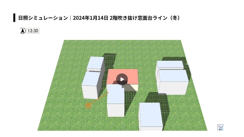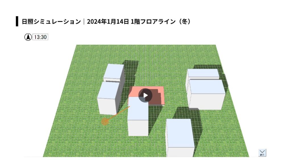 敷地の方位、周辺建物を考慮した詳細な日射シミュレーション