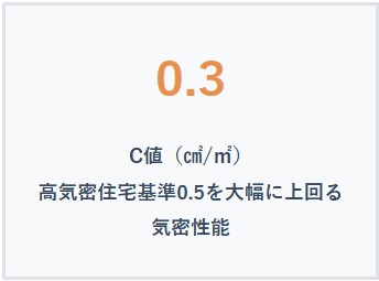 すべての住宅でC値0.5㎠/㎡以下を保証(実測平均0.3㎠/㎡)