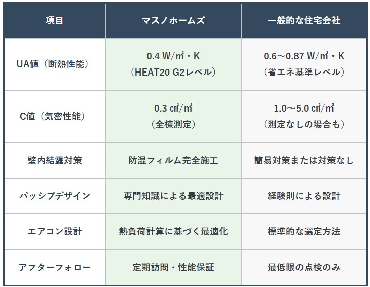 そんなお客様の想いに応えるため、マスノホームズは他社では真似できない独自の技術力と施工品質で、本当の高気密高断熱住宅をお届けしています。入居後も続く安心のサポート体制で、家族の笑顔が続く家づくりを実現します。