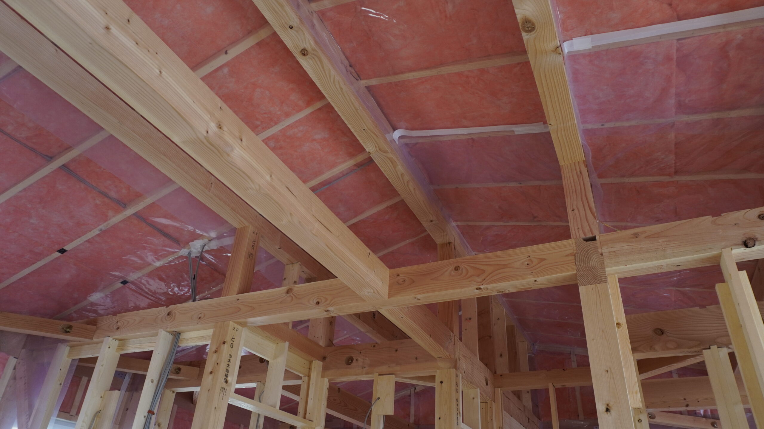 充填断熱の弱点である断熱材の沈下や木部の痩せによる断熱欠損を防ぐ特別な施工法