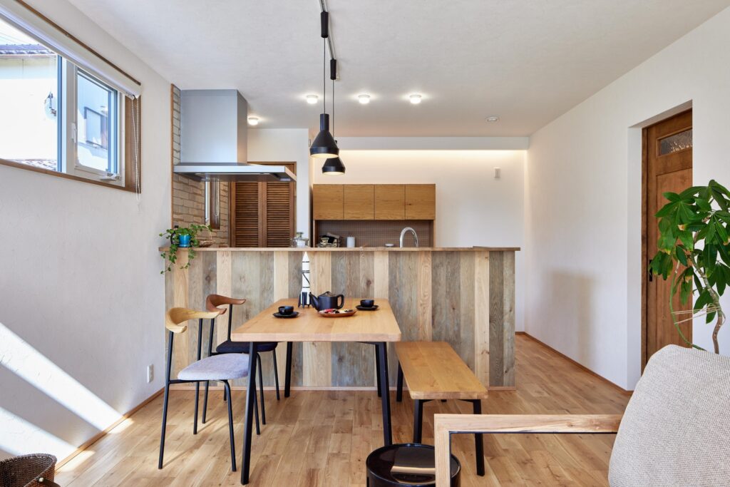 無垢材の床、漆喰の壁、木製の扉や棚…。自然素材に囲まれた家にはあたたかみがあり、そこに居るだけで癒されることができます。また年月を経るほどに味わいを増す「経年変美」も、自然素材の魅力。そこには「時間の経過を楽しむ暮らし」が生まれます。