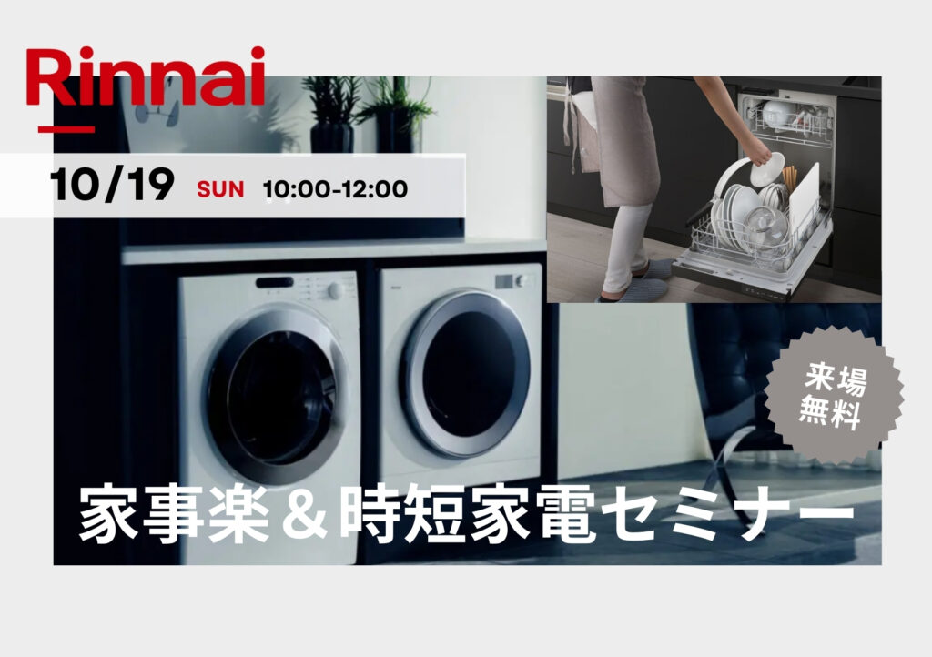 10/19 家事楽&時短家電|乾太くんセミナーを開催いたします。