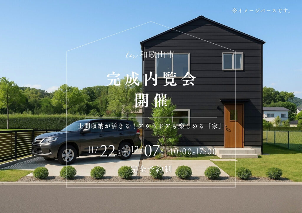 和歌山市にて土間収納が活きる!アウトドアも楽しめる「家」完成内覧会開催いたします。